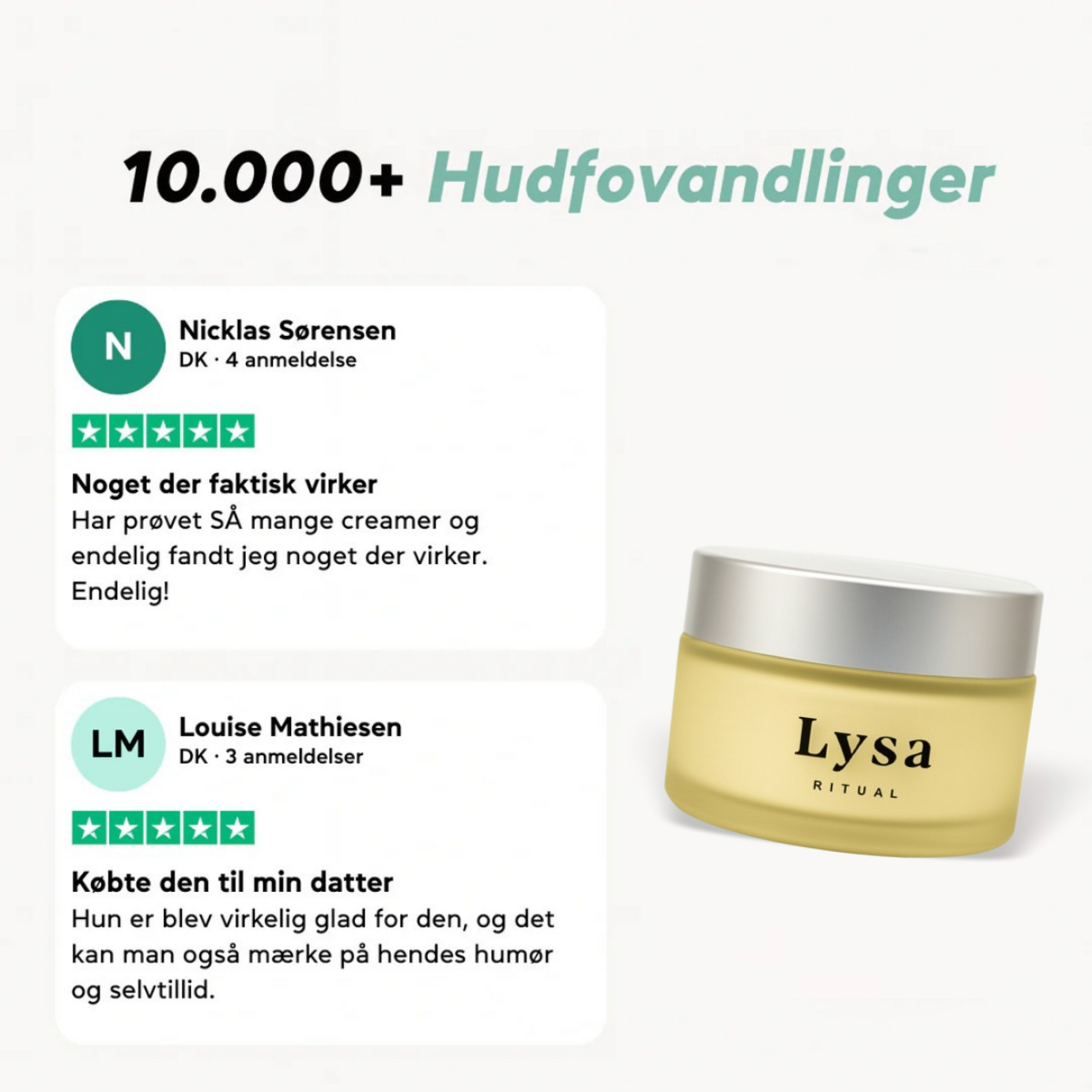 Jeg har kæmpet med tydelige akne-ar i årevis, men efter lidt over 3 uger med Lysa Aknear kunne jeg pludselig se en markant forskel. Arerne virker langt mindre synlige, min hud ser mere jævn ud, og for første gang føles min hud virkelig som om den er på vej tilbage. – Laura S